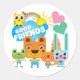 Amigos animales, amables, coloridos y divertidos, diseñan camisetas, bibs, mantas, paños para la pared, juegos de baño, relojes de pared, bolsas, tazas, aguijonetas y más detalles como un búho, oso, ardilla, conejo conejo y rana, un sol, arco iris, corazones y nube con texto que lee ¡Buenos amigos!
