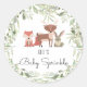 Pegatina redonda clásica de animales del bosque baby sprinkle. Diseñada para coordinar con nuestra colección baby sprinkle de animales del bosque, con un ciervo, zorro y conejo lindos con hojas del bosque enmarcando el nombre de la futura mamá. Perfecta para pegatinas de favor y sellos de sobre.