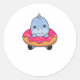 Pegatina Redonda Animales Divertidos De Dinosaurios En Rosa De Donu