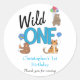 Un fiesta salvaje animales pegatinas de azul con globos. Utilice nuestra plantilla para editar los detalles del fiesta.