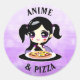 Pegatina Redonda Anime y Pizza Personalizado negro y morado