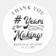 Celebra cualquier aniversario de bodas con estas pegatinas de GRACIAS en negro y blanco que presentan un diseño de título de tipografía de letra caligráfica # AÑOS EN CREACIÓN que incorpora cuántos años llevan casados (por ejemplo, 50 AÑOS EN CREACIÓN) y su año de bodas dentro del diseño, el título editable FELIZ ANIVERSARIO y personalizado con nombres y fecha u otro texto personalizado. Utilízalas como pegatinas de agradecimiento para fiestas o sellos de sobre en sobres de tarjetas de agradecimiento. Contacta con el diseñador a través de Zazzle Chat o makeitaboutyoustore@gmail.com si deseas que se modifique este diseño, en otro color, en otro producto o si deseas artículos coordinados.