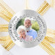 Un fondo plateado falso decorado con diamantes falsos. Personalice y agregue una foto y fecha. Texto negro.
