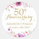 Pegatina Redonda Aniversario de Bodas de Oro Acuarela Floral