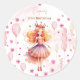 Pegatina Redonda Aniversario de la princesa rosa y los globos