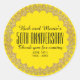 Pegatina Redonda Aniversario del Boda amarillo y dorado personaliza