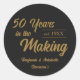 Nuestro elegante pegatina de 50 años de boda cuenta con un impresionante diseño de confeti dorado y una hermosa frontera dorada con una elegante tipografía de oro. La manera perfecta de ayudar a los seres queridos a celebrar 50 años de amor y compromiso. ¡Levantemos un vaso y hagamos nuevos recuerdos juntos!