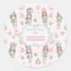 Pegatina Redonda Aniversario del chica Nacimiento de Náuseas Rosada