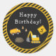 Celebra tu día especial con este pegatina de la fiesta de cumpleaños de un niño personalizado con un adorable tema de construcción. Cada pegatina cuenta con un camión de volcado y una excavadora que trabajan juntos en una obra de construcción de carreteras. También hay conos de tráfico naranja y rayas amarillas y negras. ¡Añada la edad de su hijo para un toque especial! ¡Este pegatina infantil hace una gran adición personalizada a la celebración de tu fiesta de cumpleaños!