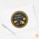Pegatina Redonda Aniversario feliz de la construcción con niño mayo