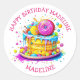 Pegatina Redonda Aniversario personalizado del delicioso pastel esc