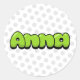 El nombre de Anna en el texto de estilo retro de historietas de color verde.