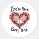 Pegatina Redonda Anniversary Heart Birds Love You More Romantic