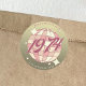 Pegatina de estilo retro vintage para una fiesta de cumpleaños número 50 o cualquier otro evento relacionado con el año 1974! Diseño con una bola de disco, con un toque de color rosa claro y un guión "1974" groovy vintage sobre un fondo de degradado dorado.