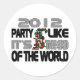 El colorido Dios maya en el centro de un collage de palabras grises y negras, "El fin del mundo es el Fiesta Like It's 2012". Humor perfecto jugando sobre la teoría del calendario maya