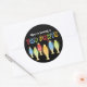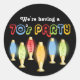 ¡Apague las luces y encienda! Este pegatina presenta una variedad de luces de diferentes colores brillando en la oscuridad. El texto "Fiesta de los años 70" se representa en una paleta arcoiris de un tipo retro. Elige tu 'for y pon tus plataformas en marcha! Ideal para fiestas de cumpleaños, fiestas de disfraces o cualquier reunión con temas de los años 70. Disponible con productos coincidentes. com.