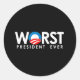 Pegatina Redonda Anti-Obama - El peor presidente nunca blanco