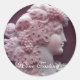 PEGATINA REDONDA ANTIGUA DAMA VINO ROJO, GRAPAS Y GRAPEVINAS