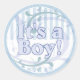 Pegatina Redonda Anuncio de nacimiento con rayas azules