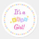 Pegatina Redonda Anuncio de nacimiento de una niña pequeña rosada