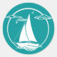 Pegatina Redonda Anuncio de silueta azul acuático/velero