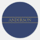 Pegatina Redonda Apellido o empresa Navy Blue & Gold Name