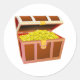 Pegatina Redonda Apertura del tesoro de madera con monedas de oro b