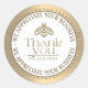 Muéstrele a sus clientes que aprecia su negocio con este pegatina profesional de abejas de miel de estilo grabado en relieve. "GRACIAS" está escrito en un elegante texto de gradiente dorado y el texto está rodeado por un llamativo borde dorado.