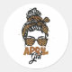 Pegatina Redonda April Chica Messy Hair Gafas de sol Leopard Lady