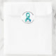 A sticker to bring awareness to sexual assault awareness month with a teal awareness ribbon.