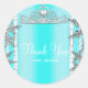 Pegatina Redonda Aqua Azul y Copos de Nieve de Invierno Plateados C