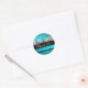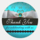 Pegatina Redonda AQUA BLUE GEMSTONE, BLANCO DAMASK RIBBON Gracias