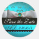 Pegatina Redonda AQUA BLUE WHITE DAMASK RIBBON MONOGRAM Gemstone