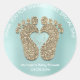Pegatina Redonda Aqua Gold Heart Feet Baby Shower Favor Gracias