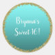 Pegatina Redonda Aqua Turquesa Bañada en Oro Brillo Glam Brillante
