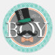 Pegatina Redonda Aqua Turquoise Retro Funny Boy Baby Shower
