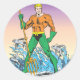 Pegatina Redonda Aquaman Se Pone De Pie Con Spear