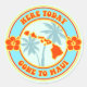 Clásico "Here Today Gone Today Maui" con hibiscos y palmeras. Maui Hawaii pegatina.