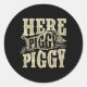 Pegatina Redonda Aquí Piggy Piggy - Caza de jabalíes