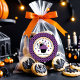 Pegatina Redonda Araña negra púrpura Polka Dot Halloween Cumpleaños