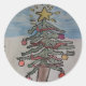 El lindo muñeco de nieve ha estado ocupado decorando su árbol de Navidad y ahora se ve muy bonito con mejillones, bolas de vidrio de color y una estrella amarilla radiante. Pintada en suave azul pastel, verde, amarillo, rojo y violeta, esta es una alegre y festiva acuarela original del árbol de Navidad para añadir un toque de brillo y color a tu temporada de vacaciones,
