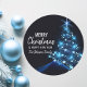 Añada estas vacaciones de Navidades blancos AZUL modernos y personalizados y felices pegatinas de año nuevo a sus tarjetas de felicitación, sobres. Árbol de Navidad con luces azules y blancas. Texto editable - color, fuente y tamaño.