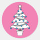 Un ilustracion de un elegante árbol blanco de Navidad de moda con abundantes bolas colgantes azules con fondo rosado. Este diseño es para gente que ama a los Navidades, dando regalos y regalos.