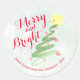 Pegatina Redonda Árbol de navidad con acuarela abstrante y brillant