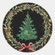 Pegatina Redonda Árbol de Navidad con bayas rojas de oro que brilla