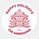 Pequeño y acogedor árbol de Navidad al estilo escandinavo, con caballos de dala rojos, flores y renos en forma de árbol de Navidad. La frase Felices Fiestas de "tu apellido" aparece en el diseño del árbol de Navidad, Grande para sellar esos sobres de tarjetas de Navidades, usando como etiquetas de regalo, tantas opciones. El texto es totalmente personalizable desde la página del producto, para cambiar estilos de fuente o colores, utilice la herramienta de diseño para un control completo del proceso de personalización.