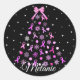 Pegatina Redonda Árbol de Navidad de copas rosadas con copo de niev