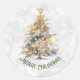 Pegatina Redonda Árbol de Navidad en acuarela