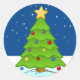Pegatina Redonda Árbol de Navidad lindo en nieve