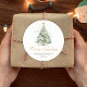 Pegatina Redonda Árbol de navidad moderno con acuarela Gold Script